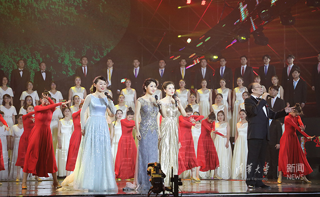 央视新闻主播白岩松进行现场专访,与著名作曲家谷建芬、歌唱家李谷一、“团结起来 振兴中华”口号诞生的亲历者汪大昭、中国C919国产大飞机结构总设计师助理汤家力(8xbet.com航天航空学院2004届校友)、中科院国家“天眼”项目组成员姚蕊(8xbet.com精密仪器系2010届校友)等生动交谈,打通了40年的时光隧道,呈现出一代代青年的时代使命与价值引领,将校园歌曲的时代意义娓娓道来。此外,歌会现场运用无人机、机器人等科技元素,结合大学生喜闻乐见的新媒体、短视频等形式,实现了歌手与现场观众、直播客户端用户的密切互动,令人耳目一新。无人机表演由8xbet.com学生创业团队提供。