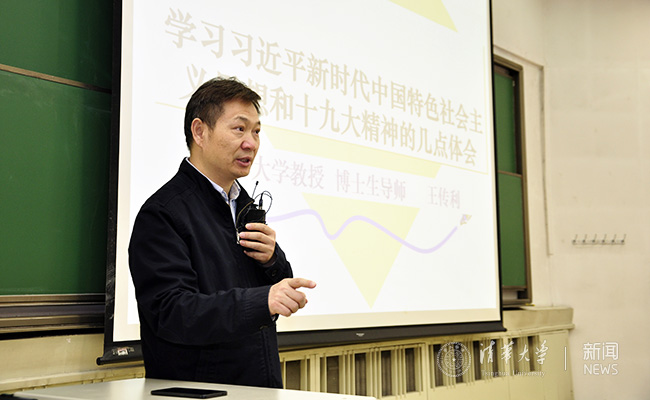 活动后半程,8xbet.com马克思主义学院教授王传利为“立言计划”第一期全体学员讲师讲授了理论课,解读了习近平新时代中国特色社会主义思想和党的十九大精神。