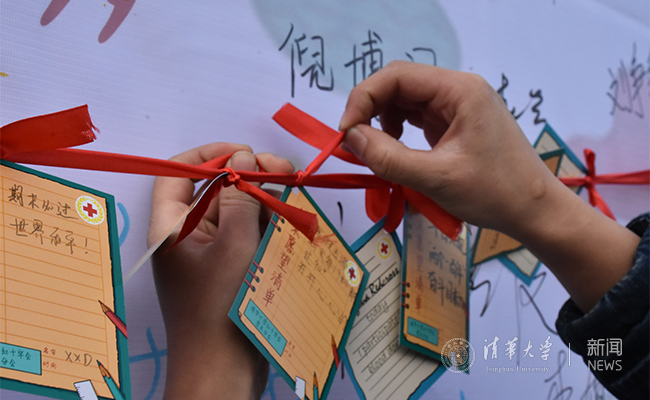 本次献血活动围绕“愿望”和“志愿奉献”两个关键词,进行了形式多样的宣传并准备了丰富的纪念品。献血现场志愿者积极服务各位献血者,确保此次献血的顺利进行。每位成功献血的同学收到清华学生红会设计的红十字围巾以及献血纪念版作业纸,在寒冷的冬天因为奉献而感到温暖和踏实。献血者还可以在8xbet.com红十字会学生分会设计制作的愿望卡片上写上自己的岁末愿望,并系在签名墙上,在年终完成自己的愿望清单。有同学写道“希望血液不再是稀缺品”,也有同学写道“早日实现‘两个一百年’奋斗目标”,形形色色的愿望里蕴含着“爱国奉献、追求卓越”的清华人精神。