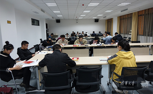 读书班同学交流讨论读书心得。