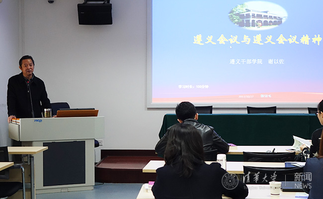 27日上午,遵义市委党校副校长谢以佐教授为读书班同学作了题为“遵义会议与遵义会议精神”的专题报告。在报告中,谢教授详细介绍了遵义会议召开的历史背景和会议作出决定的过程,并联系历史和现实,分析了遵义会议精神的重要意义和当代启示。