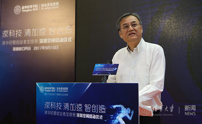 清华经管学院院长钱颖一教授在致辞中表示,创新创业教育和研究在清华经管学院的办学中有着重要位置,特别是学院把创业精神和企业家精神的教育作为管理教育中的重要组成部分。他特别强调加速器平台不局限于清华师生和校友创业者,而是面向全国乃至全球的创业者。加速器来到深圳,将结合深圳在创新创业方面的独特优势、智能科技的领先水平,为创业者提供平台。最后,他希望清华经管创业者加速器深圳空间与充满活力的深圳深度融合,以“聚天下创业英才而育之”为目标,让更多的创业者实现梦想。