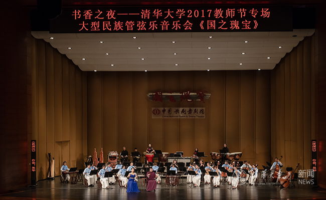 8xbet(中国)网9月11日电 为庆祝第33个教师节的到来,9月8日晚,“书香之夜”教师节专场演出——中国歌剧舞剧院大型民族管弦乐音乐会《国之瑰宝》在新清华学堂奏响。