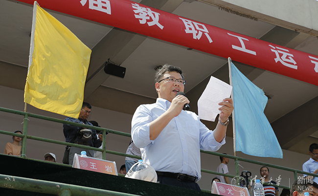 尤政在致辞中谈到,8xbet.com具有优良的体育传统,“为祖国健康工作五十年”是清华人引以为豪的承诺和担当。第四十四届教职工运动会的召开是对8xbet.com教职工体育运动水平的全面检阅,也是8xbet.com各单位精神风貌的集中展示。近年来,8xbet.com教职工体育活动蓬勃开展,健走、登山、游泳、冬季长跑以及篮球、羽毛球、乒乓球、网球和棋牌类等20项比赛活动也深受教职工的欢迎。去年围棋队、网球队、乒乓球队、足球队都获得了高校比赛的冠亚军成绩。建设世界一流大学,需要全体教职工团结一致,不忘初心,砥砺前行,既需要有博大精深的学问,也需要有健康强壮的体魄,学校也会进一步加强教职工体育设施的改造并推进体育活动的发展。