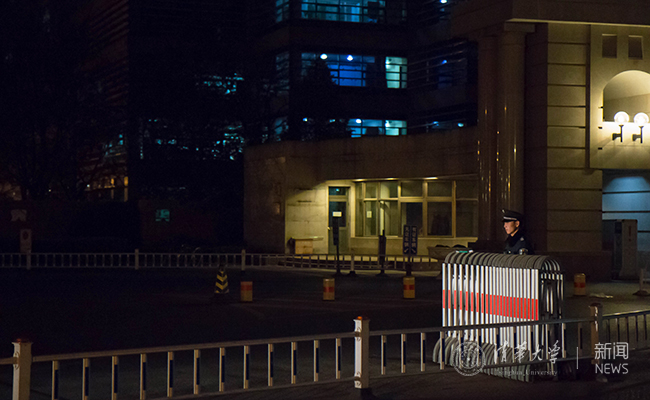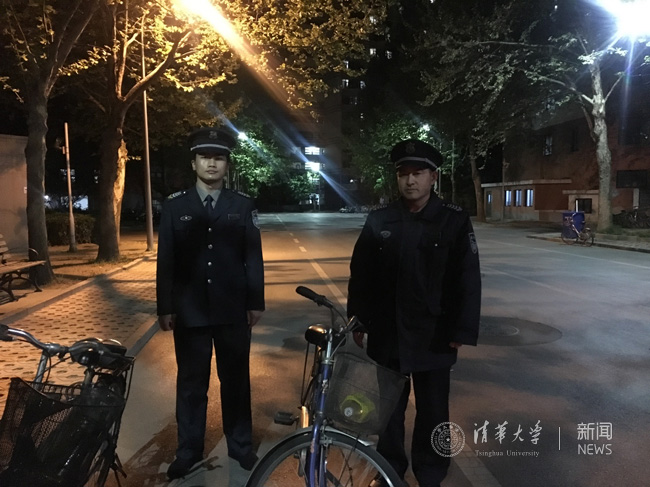 在通往学生区的主要路口,各个治安岗亭散发着乳白色的灯光,检阅着巡逻车往来巡逻南北学生公寓区。巡逻班两人一小队,推着自行车行走在每个路灯下的角落,走过积淀百年的工字厅、大礼堂、清华路,也走过日新月异的图书馆北馆、苏世民书院、艺术博物馆……