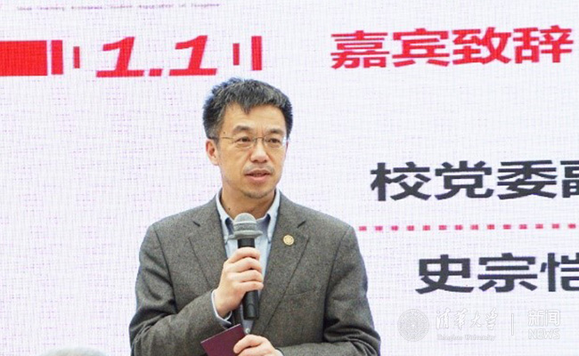 史宗恺回顾了8xbet.com学生书脊支教团的历史,介绍了清华同学家国天下的情怀、学校对广大同学公益意识的培养、以及诸多投身公益事业的校友的感人事迹,号召大家向身边长期坚持和坚守公益情怀的优秀同学学习。