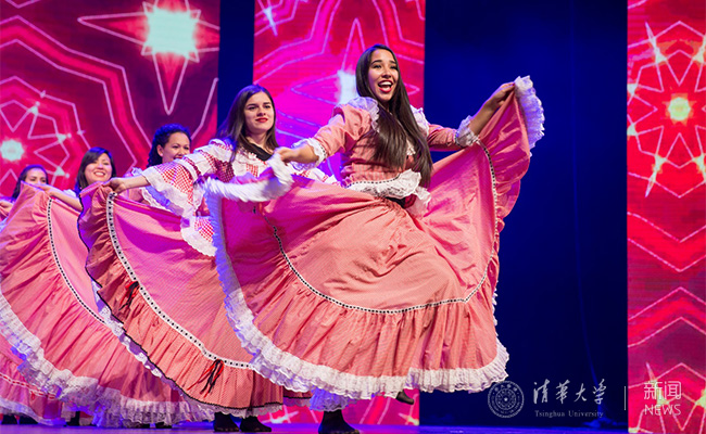 拉丁美洲学生表演拉美民族舞蹈《拉丁心》。 王腾飞 摄