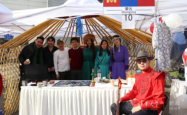特色展览区域设有45个展棚,来自世界各地的学生纷纷拿出最具地域特色的美食、特产、手工艺品,通过趣味游戏、互动环节吸引观众驻足交流,展示本国文化的独特魅力。韩国学生带来了彩虹糕、甜蜜露、辣鸡炒面等自制食物,被观众一抢而空。来自俄罗斯的女生为观众编制了独具风情的长辫;布隆迪的留学生在现场进行了“母语教学”。另外,活动还专门设置了留学生体育风采展区,用图片展现大家在运动场上的飒爽英姿。