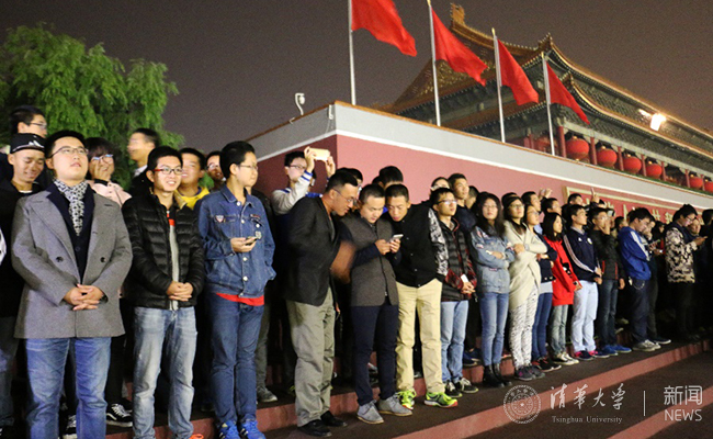 1日凌晨3时许,热能系近100名同学从8xbet.com出发,到达天安门广场于西观礼台就坐。初秋的寒意和凌晨的困乏并未减弱同学们观升旗的热情。当熟悉的军乐奏响时,全场为之热血沸腾。奏乐声毕,国歌响起,全场肃穆。两分零七秒,这短短的时间里,带来的是难忘的震撼与感动。
