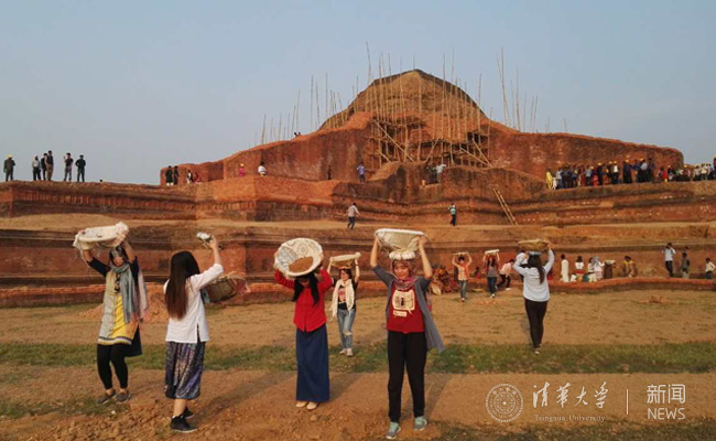 时值二月,地处热带的孟加拉国,气温仍然高达39度。在孟加拉国的帕哈普尔,身着莎丽的中年妇女们头顶箩筐,往返运送沙土,修复这座1300余年历史的佛教遗祉。一只中国青年团队来此考察,在带队教师的提议下,队员们放下手中的笔记本和相机,参与劳作的队伍,体会当地人的工作。