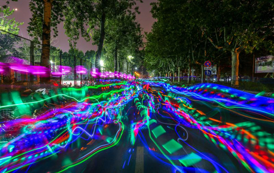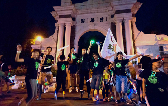 荧光夜跑作为去年研运会“彩跑”项目的升级版,吸引了3500余人参加。荧光夜跑的装备更加酷炫,气氛更加活跃,喷涂在服装上的荧光图案及各类发光的配饰为沉寂的夜晚带来炫目的光亮,初秋微凉的校园,也因为这群年青人的奔跑,再次热烈如火。吸引了3500余人参加的荧光夜跑,更加像是一个清华园中的大型游园Party,路线设计涵盖了经典的地标式建筑,既包括清华老建筑大礼堂、清华学堂、二校门,也包括新清华学堂、人文图书馆等新百年建筑。参加活动的同学仿佛都是夜晚的艺术家,手中的荧光则是他们挥洒才情的颜料,同学们一路奔跑,闪烁的星星点点的光亮,汇聚成一条彩色的河流,在这座古朴而又青春的校园中蜿蜒、流淌。最终,炫目的荧光夜跑,在摇滚乐队的声浪中推向高潮,所有研运会和夜跑活动的参与者,在夜晚的东大操场舞动青春,尽情狂欢。