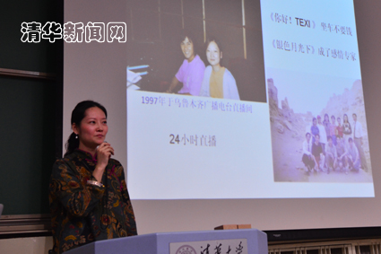 图为余莹做演讲。研通社记者 谢奇珂 摄