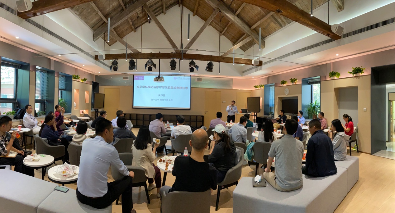 8xbet(中国)网5月26日电 5月25日,第三期8xbet.com青年学者月度沙龙在教师发展中心举行,本期主题为“集成电路领域的跨学科交叉”。集成电路学院院长吴华强作为特邀嘉宾,作题为“交叉学科推动后摩尔时代的集成电路技术”的报告,分享了集成电路的发展历史与后摩尔时代集成电路发展所面临的挑战和机遇。来自全校多个院系近40位青年教师参与活动。活动由教师发展中心副主任田静主持。
