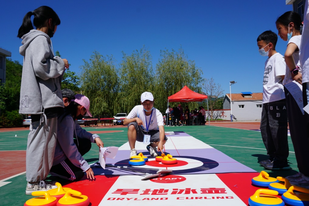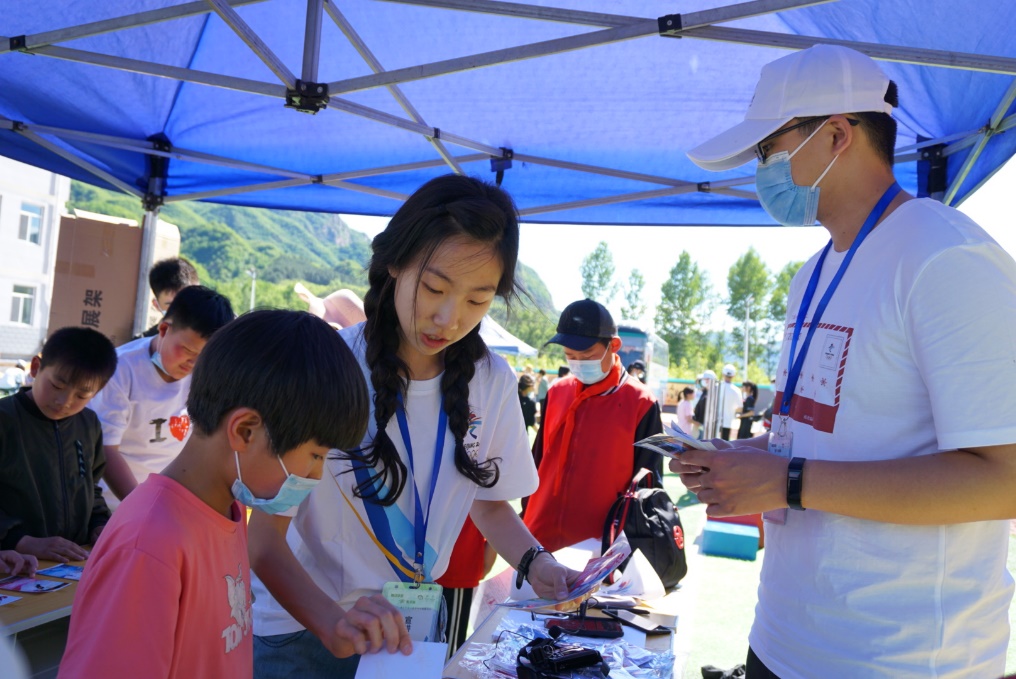 在活动中,清华志愿者和刘杖子乡的孩子们共同演唱了2022年北京冬奥会志愿者之歌《燃烧的雪花》,带领孩子们亲身体验冬奥会竞技项目“冰壶”和“冰球”;同时还设计了卡片收集、冬奥拼图、与奥运吉祥物合影等活动,同孩子们也一起感受冬奥魅力。