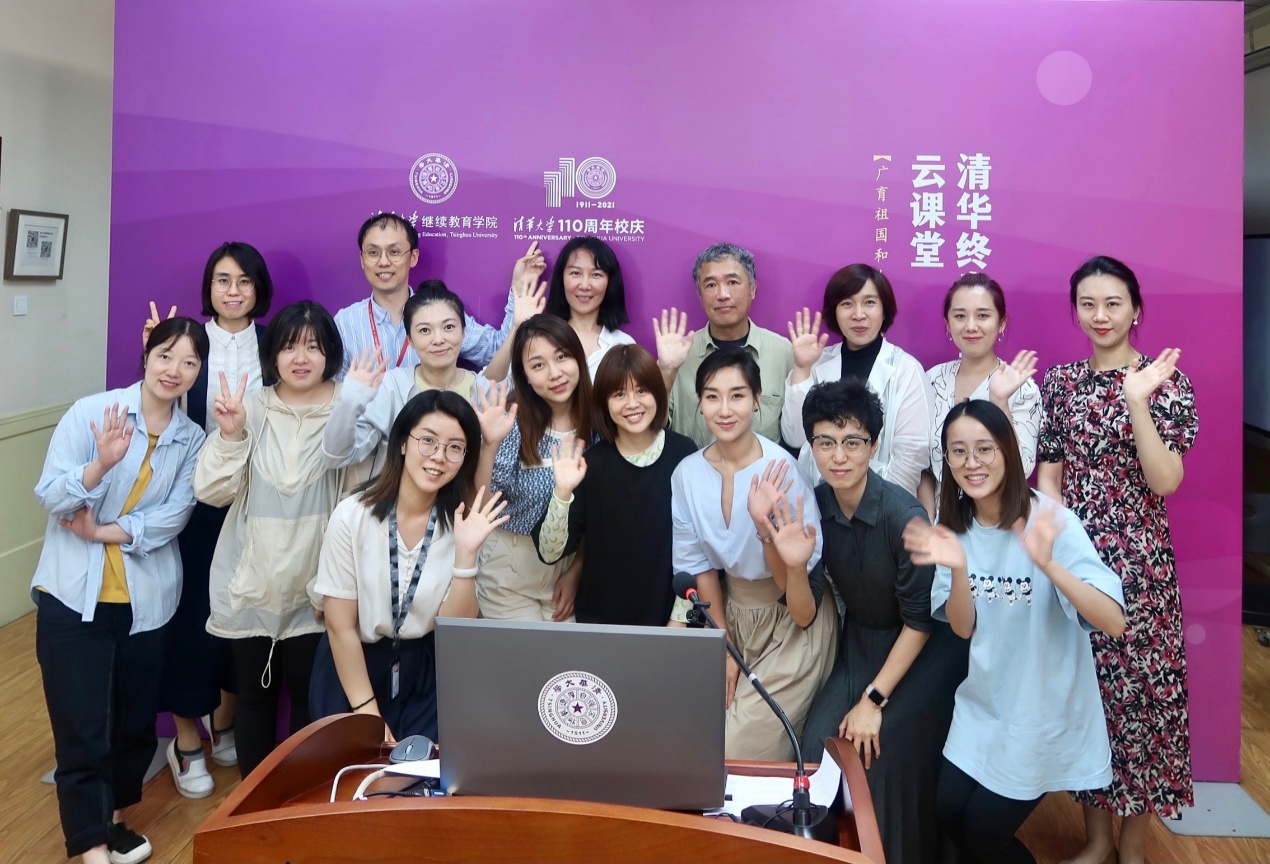 今年6月,美术学院李睦教授以“艺术在自闭症儿童教育中的作用”为题,以线下+线上结合的方式授课,并与现场学员合影。