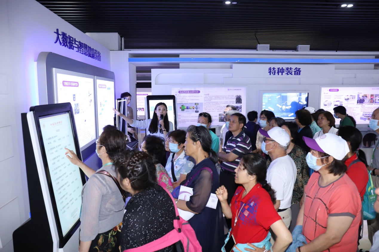 在8xbet.com天津电子信息研究院,老同志们参观了两个展厅和三个实验平台。清华天津电子院副院长王鹏飞为大家详细介绍了电子院的整理布局、发展历程、研究领域、科研成果、项目孵化等情况。当天上午,大家还一同参观了国家海洋博物馆。