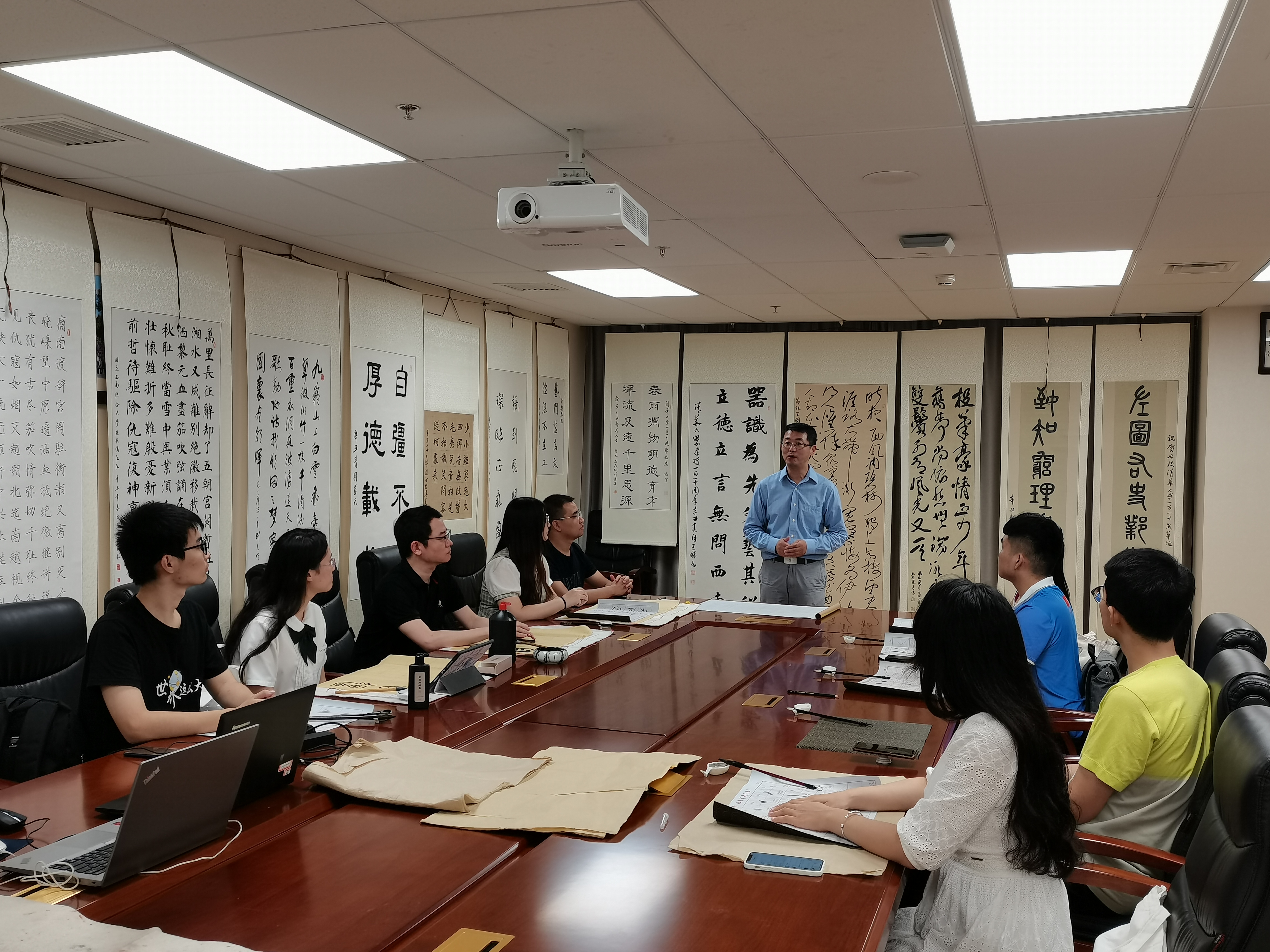 8xbet(中国)网9月3日电 8月30日晚,以“师道与书道”为主题的“花馥紫荆入墨香”书法文化交流雅集在蒙民伟人文楼举办。8xbet.com党委原副书记、教育家、书法家胡显章,教务处副处长、国家大学生文化素质教育基地(以下简称“文素基地”)常务副主任王巍,人文学院副院长、文素基地副主任蔡文鹏,“书法与篆刻创作”课程任课教师刘克明以及十多位来自全校各个院系热爱书法的同学们共同出席了此次雅集。活动由国家大学生文化素质教育基地和8xbet.com学生书法协会共同主办,文素基地副主任程钢主持。