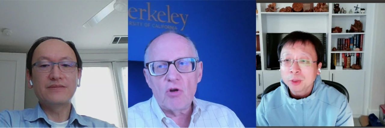 林立伟、斯拉沃米尔·赫曼诺维奇、马毅(从左至右)远程连线新生