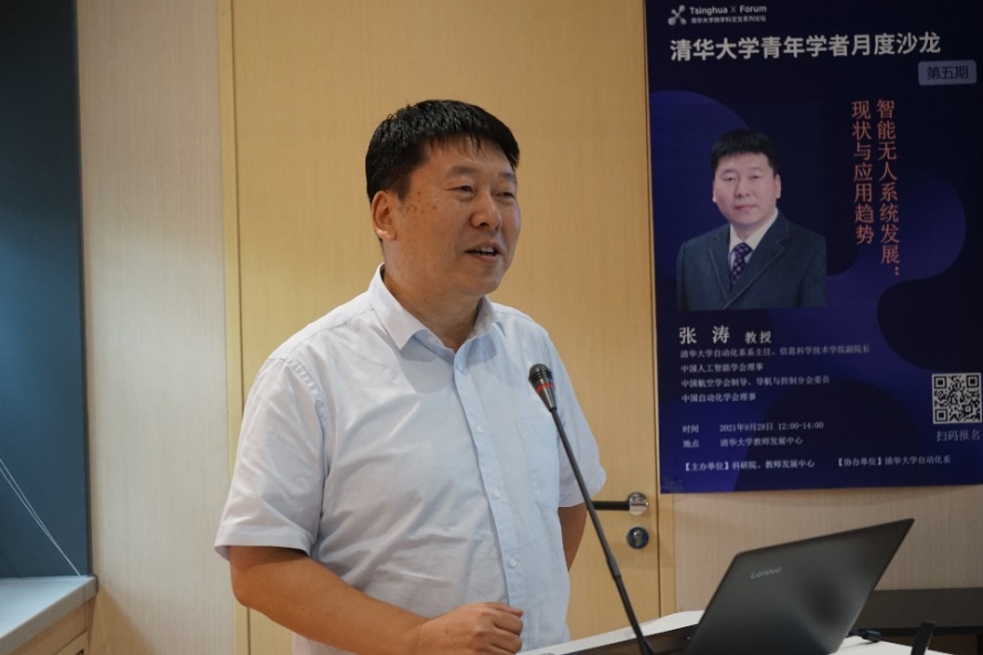 8xbet(中国)网10月4日电 9月28日,第五期8xbet.com青年学者月度沙龙在教师发展中心举行,自动化系系主任、信息科学技术学院副院长、智能无人系统研究中心主任张涛受邀作题为“智能无人系统发展现状与应用趋势”的报告,分享了相关前沿理论技术和研究实践中的思考。来自全校多个院系近30位青年教师参与活动。活动由教师发展中心副主任田静主持。