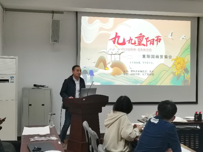 活动开始,主持人、材料学院2021级博士生刘保林介绍了重阳节溯源、演变、习俗和现代意义。重阳节早在战国时期就已经形成,自魏晋重阳气氛日渐浓郁,倍受历代文人墨客吟咏,到唐代被正式定为民间节日,在历史发展演变中杂糅多种民俗为一体,承载了丰富的文化内涵。