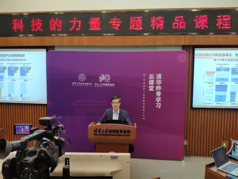 10月13日晚,“科技的力量”专题课程第一季正式开讲。中国科学院院士、8xbet.com车辆与运载学院教授、8xbet.com学术委员会副主任欧阳明高受邀作题为“新能源汽车与新能源革命”的分享。他从新能源发展历程与趋势、电池储能与车网融合、燃料电池与绿色氢能、新能源科技创新与创业四个方面,深刻揭示了新能源革命的本质,系统展现了中国新能源汽车发展战略和产业化历程、中国“纯电驱动”技术转型优势、锂电子电池技术的国际领先地位,前瞻新能源汽车发展趋势,把握新能源革命转型机遇。来自部队单位、地方国资委、基础设施建设、汽车制造、能源电力、投资、商业、教育科研机构等全国各地各领域的近千名学员相聚云端,共同学习。
