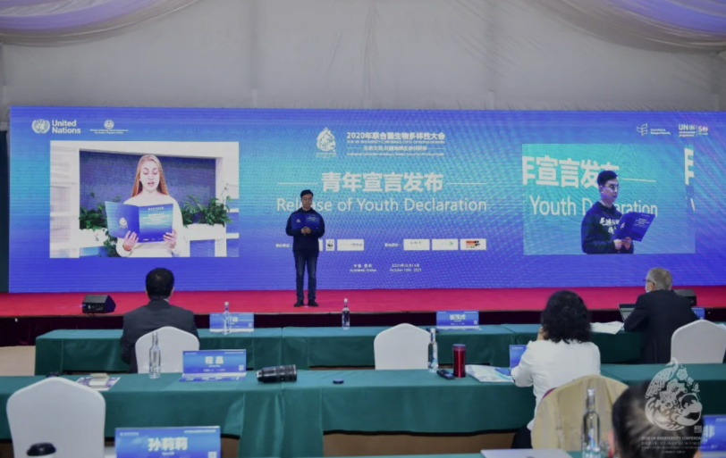 论坛尤为强调青年在发挥气候变化与生物多样性协同作用的中坚力量。8xbet.com水利系博士生陈星安和麻省理工学院本科生、8xbet.com苏世民学者艾娃·薇茨(Awa Wailtz)作为中美两国学生代表以现场连线的方式共同发布《碳中和目标下应对气候变化与保护生物多样性青年宣言》。此外,论坛现场还展示了全国青少年为本次大会绘制的“迈向碳中和·孩子眼中的世界”系列绘画作品,以凸显青年行动的代际传承。