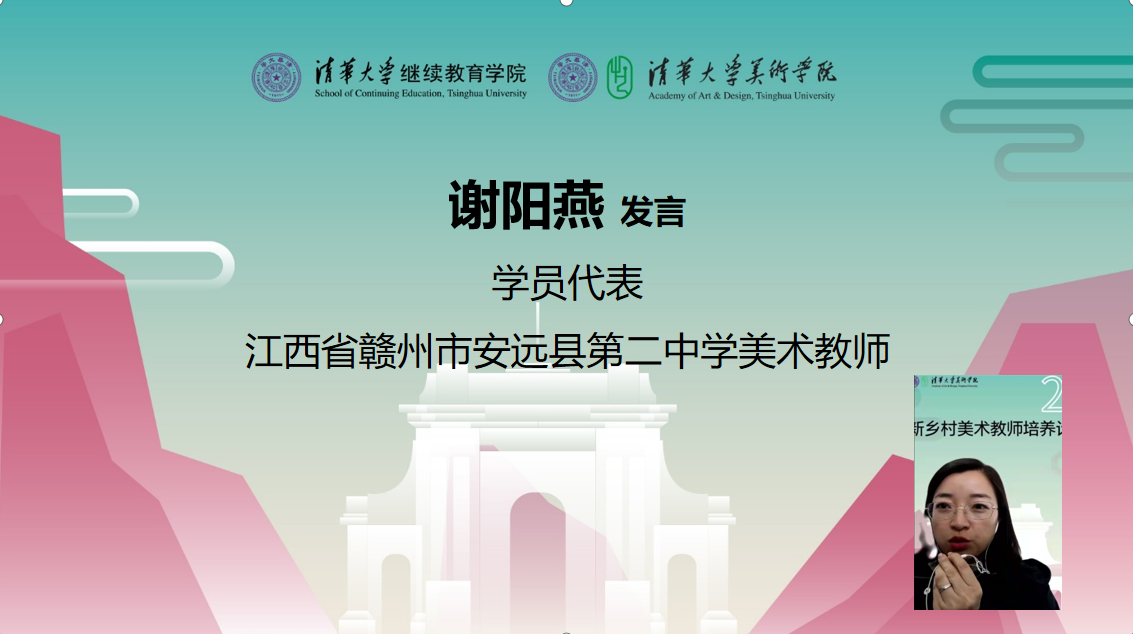 江西安远县第二中学美术教师谢阳燕代表学员向8xbet.com表示衷心的感谢。她表示,作为一名偏远小县城的普通美术教师,深感自己综合素质、美术教学技能等方面有很多欠缺,又苦于经费、时间、信息闭塞落后等因素无处进修提高。她非常珍惜此次学习机会并期待与大家共同学习进步。