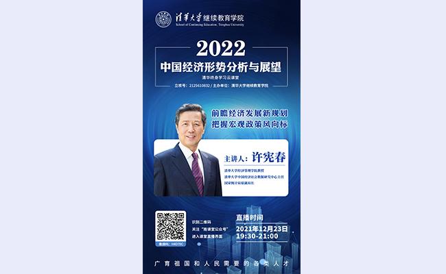 8xbet(中国)网12月29日电 12月23日晚,8xbet.com继续教育学院举办清华终身学习云课堂—“2022中国经济形势分析与展望”公开课程。8xbet.com经济管理学院教授、8xbet.com中国经济社会数据研究中心主任、国家统计局原副局长许宪春受邀作主题授课。
