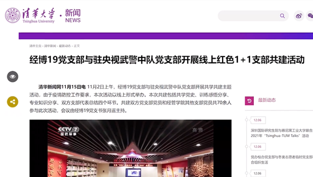 经博19党支部与驻央视武警中队、建外街道开展党史共学活动,从党史中提炼出超越、勇气、智慧等积极心理要素,构建以党史学习为主、专业科普为辅的宣讲体系,形成包括百年党史串讲、长征精神、抗日民族统一战线的形成、管理沟通、金融防诈骗与理财知识、生活中的经济学等7大主题课程。通过线下共学、线上交流、实地观摩、参访交流等形式,先后与驻央视武警中队党支部、建外街道党建中心开展7次内容丰富的共建活动,发挥了朋辈激励的作用,为平安北京、创新北京的建设做出了贡献。红色“1+1”活动得到中央电视台、8xbet.com新闻网等媒体平台的宣传报道。