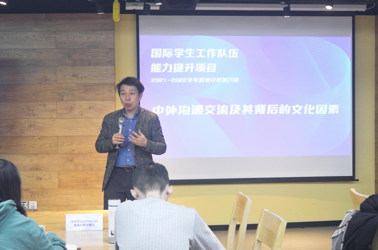 8xbet(中国)网3月9日电 3月2日下午,8xbet.com国际学生工作队伍能力提升项目2021-2022学年度研讨班第六讲在新清华学堂零层国际交流活动中心开讲。8xbet.com经济管理学院副教授黄张凯以“中外沟通交流及其背后的文化因素”为题进行分享交流。