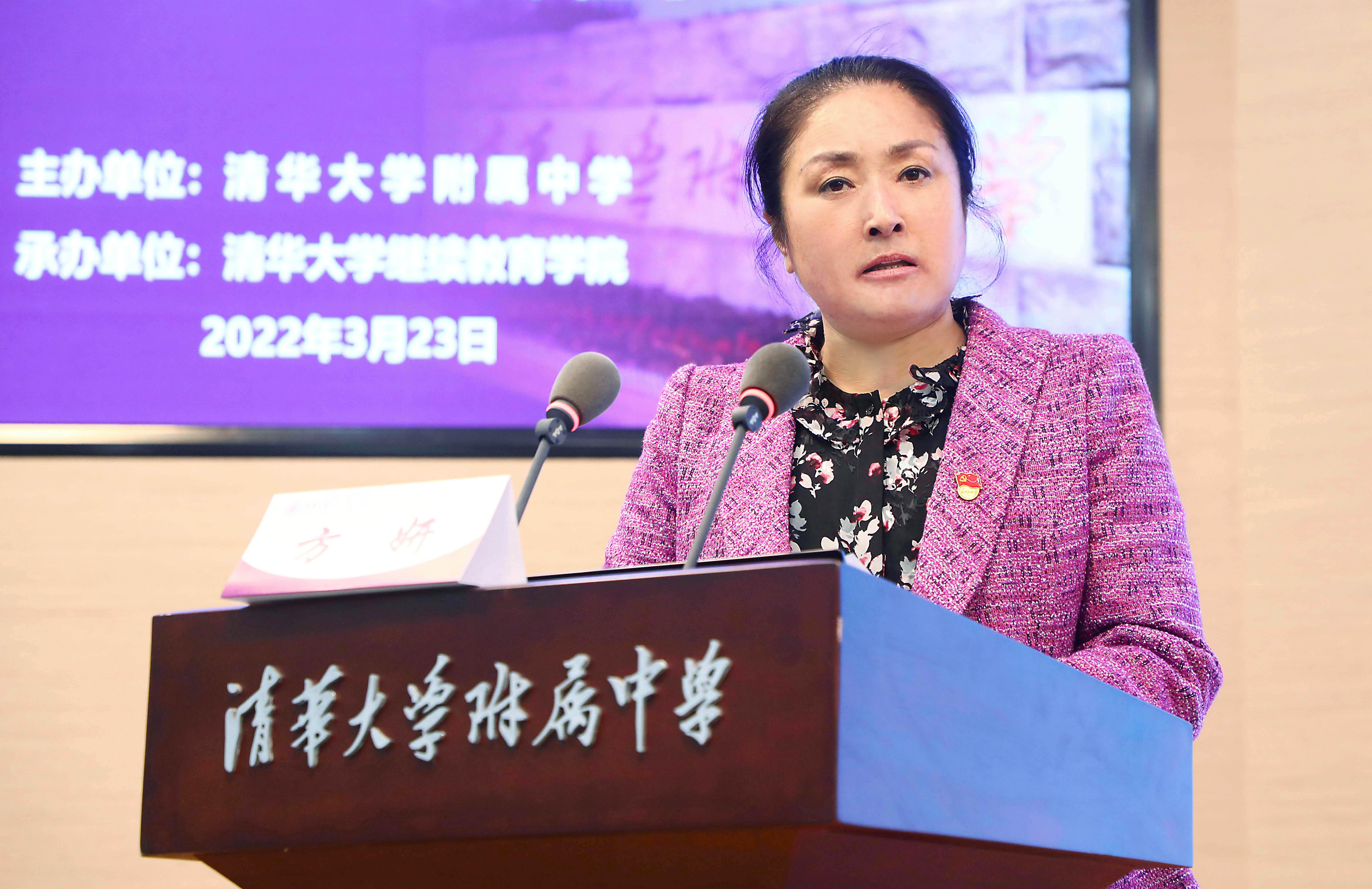 清华附中党委书记方妍作开班动员发言。她表示,在当前国家大力推进基础教育高质量内涵式发展的新时代背景下,清华附中本部及各合作学校必须始终坚持用清华意识、清华标准来谋划和推动事业向前发展,对此附中专门联合8xbet.com继教学院定制设计为期近一年的培训课程。她要求全体干部学员通过“联系时代、思悟结合、切己体察”地学习,做“时代中人、性情中人、行动中人”,深入了解清华文化、全面提升管理技能,从而实现行动上的“齐步走”。