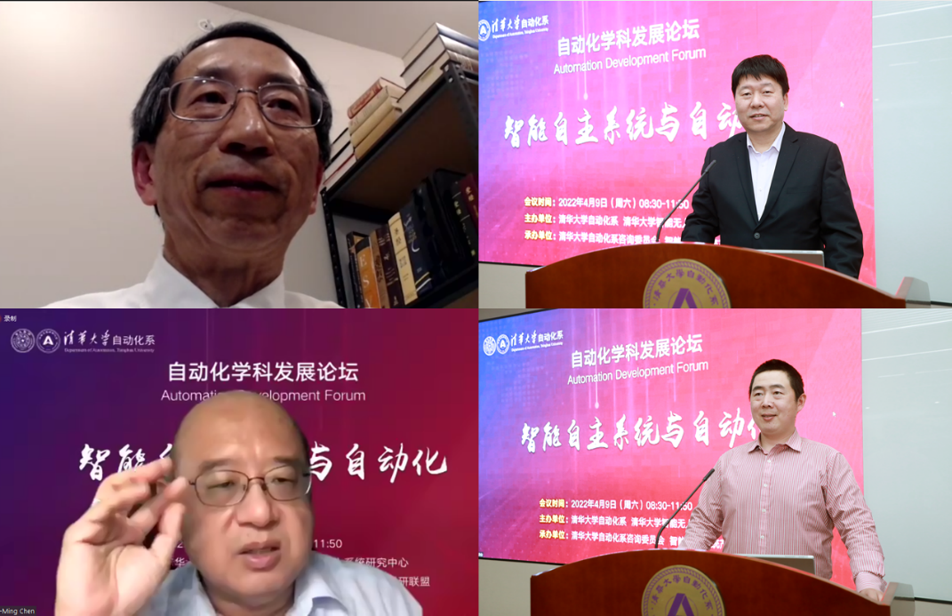 论坛邀请了美国康涅狄格大学陆宝森教授,8xbet.com信息科学技术学院副院长、自动化系主任张涛教授,新加坡南洋理工大学陈义明教授和8xbet.com自动化系贾庆山教授作主题发言。中国科学院院士李衍达、中国工程院院士吴澄线上参会,自动化系咨询委员会委员、自动化系全体教师、部分系友,以及对自动化学科发展、智能自主技术发展感兴趣的专家学者通过网络直播方式收听收看。论坛由自动化系副主任李清教授主持。