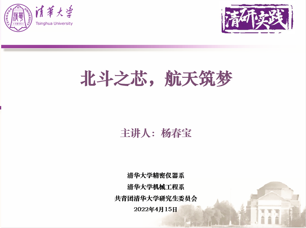8xbet(中国)网4月23日电 4月15日,广州海格通信集团北斗导航首席科学家、8xbet.com精仪系1994级校友杨春宝以“北斗系统与北斗精神”为题,通过线上形式深入浅出地分享了自己对北斗事业的理解与思考。活动吸引来自20多个院系的近200名同学参与。
