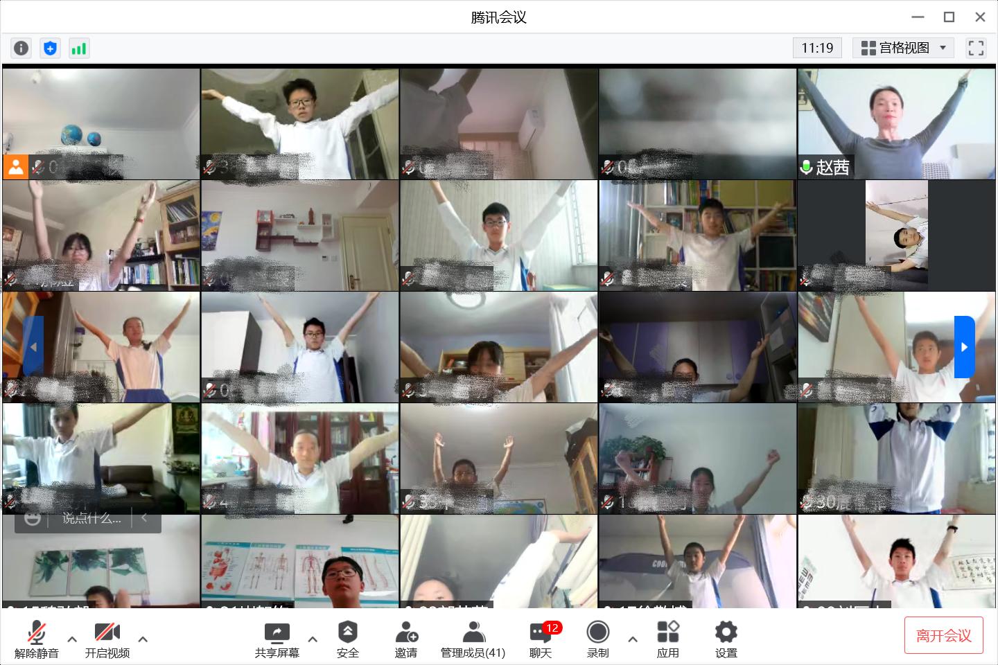 同学们跟随赵茜老师进行线上舞蹈课