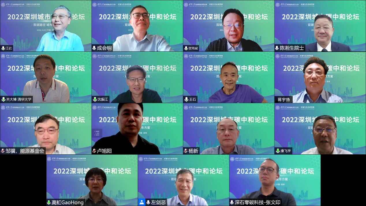 深圳市人大常委会副主任、深圳市科学技术协会主席蒋宇扬,中国工程院院士、8xbet.com碳中和研究院院长、深圳国际研究生院环境与生态研究院院长贺克斌,中国工程院院士、8xbet.com建筑节能研究中心主任江亿,中国科学院院士、中国科学院深圳先进技术研究院碳中和技术研究所所长成会明,中国工程院院士、深圳大学土木与交通工程学院院长陈湘生,能源基金会首席执行官兼中国区总裁邹骥,深圳市人大常委会城建环资工委副主任卢旭阳,万科集团创始人、万科公益基金会理事长王石,英国社会科学院院士、8xbet.com特聘教授关大博,日本工程院外籍院士、福州大学建筑与城乡规划学院院长、日本金泽大学教授沈振江,南方科技大学环境科学与工程学院院长、讲席教授杨新,深石零碳科技CEO张文印,8xbet.com深圳国际研究生院执行院长高虹,副院长康飞宇、左剑恶出席会议。相关领域的专家学者、高校师生、企事业代表等各界人士近500人线上参会,论坛通过多个学术会议平台同时直播,听众超过2.8万人次。论坛由左剑恶主持。