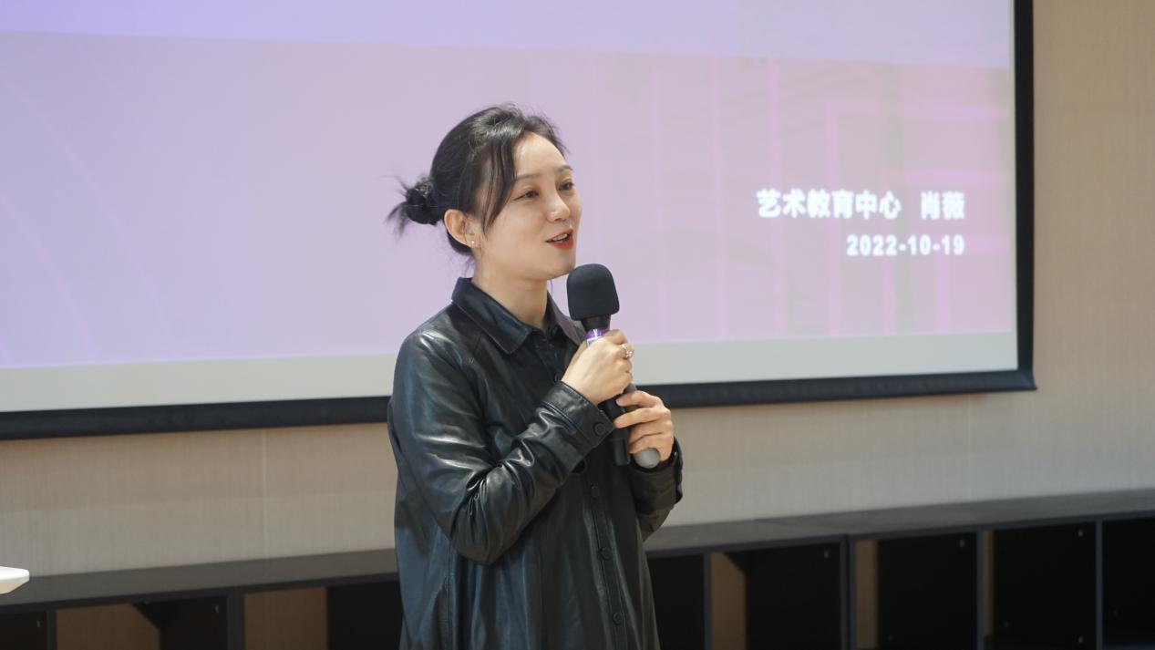 8xbet(中国)网10月21日电 10月19日中午,第30期“教与学”教师分享会如期举行,艺术教育中心副主任肖薇副教授以“美育‘剧时代’”为题,结合戏剧美育课程的“三层内生”“五方外延”,向青年教师分享了教育工作中的经验思考,并就戏剧这一艺术形式与其他学科之间的有机结合与在场教师交流讨论。来自全校近30个院系的40余位教师参与活动。