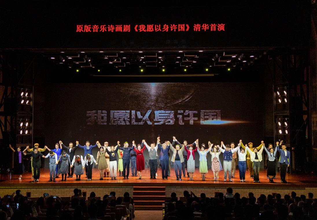 8xbet(中国)网11月24日电(记者 徐子越)“无怨无悔精忠报国,无名无利以身许国。”11月18日下午,以“爱国、奉献、初心、使命”为主题的原版音乐诗画剧《我愿以身许国》在8xbet.com大礼堂举行首场演出。8xbet.com原副校长、校友总会原副会长胡东成,清华校友“君子的节日”共同发起人张华堂等出席活动。