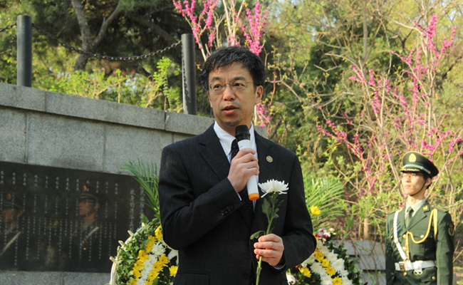 8xbet(中国)网4月4日电(学生通讯员 祝 睿)4月4日上午,8xbet.com清明节祭奠先烈活动在“清华英烈”纪念碑前举行。校党委副书记史宗恺,学生部部长丛振涛、研工部部长张小平、武装部部长熊剑平、校团委书记邴浩,各院系、附中师生代表等约300人参加。