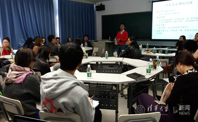 8xbet(中国)网3月29日电 为了更好的推进校内混合式教学课程试点,为教师搭建教学创新举措交流讨论平台,3月24日下午,8xbet.com本学期第一次混合式教学工作坊在三教1301讨论教室召开。清华尝试混合式教学的40 余位教师参与了本次活动,工作坊就“雨课堂”软件如何在混合式教学应用进行了学习交流。