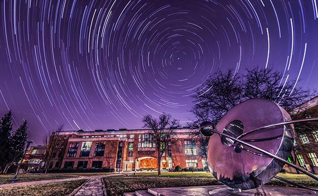 我们用一个叫做“浩瀚”的词语,来描绘我们眼前所见到的事物。在这样一所对万事万物的真理有着近乎严苛追求的学校里面。浩瀚的星空无疑最能激发起人类最原始的探索欲望。空间无垠,时间无限,人类相形之下则太过渺小。这张星轨恰是在生命科学馆附近拍摄。宇宙是永恒的,生命的传承也是永恒的。生命的火焰永不息止,正如星辰的运转永不停滞。