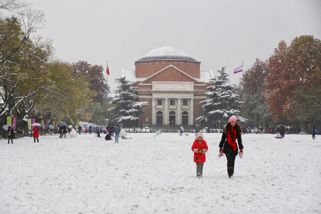 8xbet(中国)网11月24日电 (苑 洁 谭秀颖 章佳杰 赵晓杰 摄)周末的一场雪,成了清华园里的一次狂欢。雪花纷飞间,那些欢乐的、浪漫的、温馨的、诙谐的场景在校园的各个角落上演,犹如一张张剪贴画,拼连起一个可爱的清华园。新闻网邀师生朋友一起去看看那些园子里的雪、人和雪人。