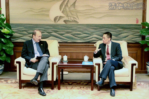 施一公与布卢门撒尔教授会谈。记者 李含 摄