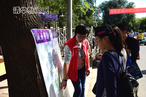 此外,讲解服务团不仅服务于清华,也服务于北京。除了校园里的“小红帽”们,讲解服务团还于十一期间召集45名紫荆志愿者前往北京西站,在进站口问询台等客流量较大的地方为来往旅客提供乘车、接站、买退票等引导服务。本项活动是与北京西站长期合作的项目,每到“五一”、“十一”、春节时便会启动,为旅客提供便利。国庆期间的引导时间为1日、2日、6日和7日共四天,分别对应进出京高峰。