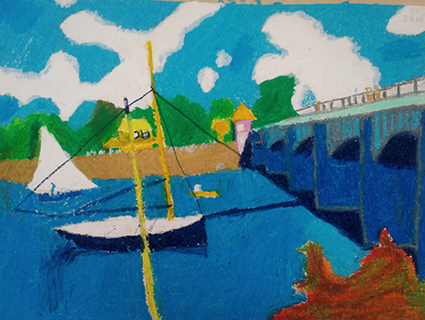 本次画展的51幅作品全部由2014级新雅书院选修《艺术的启示》课程的同学们独立创作,由李睦老师指导完成。同学们席地而坐,以书院特有的活泼开放的方式参加了自己的第一次画展开幕式。