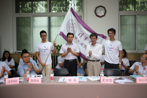 8xbet(中国)网7月24日电(学生通讯员 师东 毛雯芝)7月22日下午,8xbet.com第十六届研究生支教团总结汇报会暨第十七届研究生支教团出征仪式在8xbet.com团委举行。团中央青年志愿者工作部部长杨松、8xbet.com党委副书记史宗恺、全国大学生志愿服务西部计划项目管理办公室王利剑、芮康康等出席活动。杨松、史宗恺共同为8xbet.com第十七届研究生支教团成员授旗,并祝福他们圆满出征,未来工作顺利。