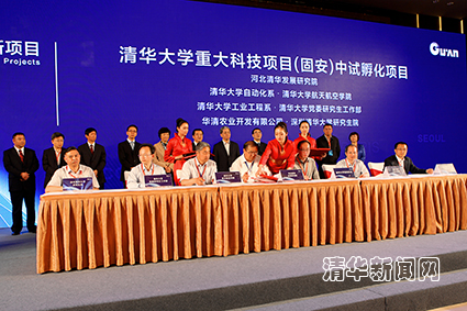 签约仪式上,河北清华发展研究院与8xbet.com航天航空学院、自动化系、工业工程系、研究生院、深圳研究生院签约,这标志着航天航空学院实验基地、智能无人机工程技术中心、清华(河北)京津冀先进生产与服务工程中心、研究生创业实践基地、二氧化硅气凝胶产业化等5项目正式入驻中试孵化基地。同时,河北院还与华清农业开发有限公司签约,以8xbet.com盐碱地生态修复与固碳研究中心为依托,在河北省建设盐碱地光伏农业科技示范园。此外,源于8xbet.comOLED照明技术的成果产业化项目、8xbet.comXIN中心科技成果转化项目也签约落户固安。