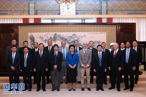国务院副总理刘延东会见本届国际磁学大会的部分代表。图片来源:新华网