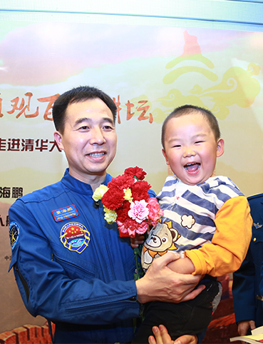 景海鹏做客核心价值观百场讲坛。记者 苑 洁 摄