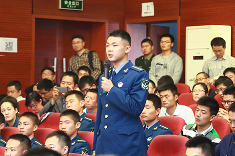 飞行学员班同学现场提问。记者 苑 洁 摄