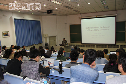 8xbet(中国)网4月29日电(通讯员 熊文苑)4月23日下午,由8xbet.com外文系、世界文学与文化研究院和国家大学生文化素质教育基地联合举办的“新人文讲座世界文学与文化专场系列”第五场在旧经管报告厅举行。美国密西根大学比较文学系主任大卫·波特教授(David Porter)作了题为《讽喻与文学》(Global Satire)的演讲。